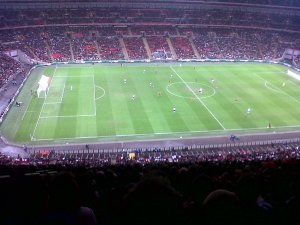 England beat Spain in football tonight 1:0. GO ENGLAND! The game was held at Wembley stadium where all seats were sold! Supposedly the attendance of tonights match was 87,189. That is ALOT of people in one space.
