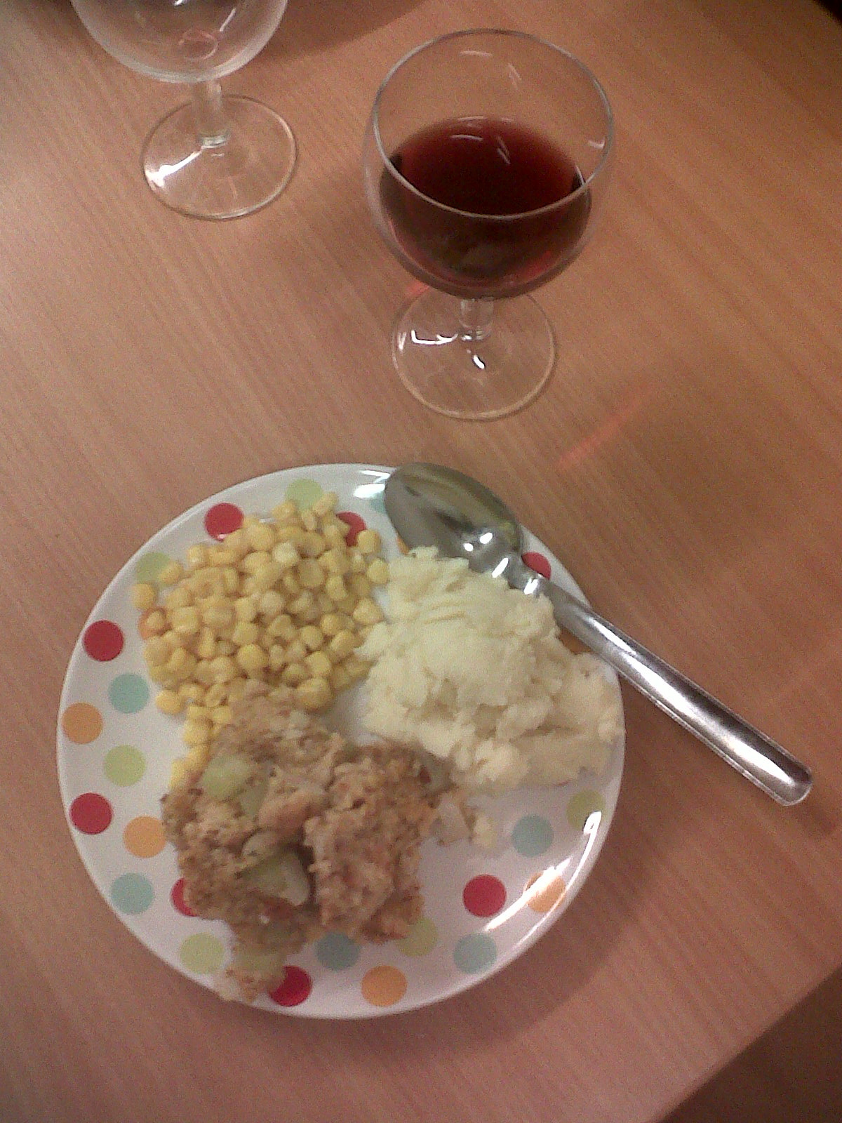 Sarah and I helped out a bit…you know, warmed up the corn. Made the instant mash. Heat up the gravy. Poured the wine. We were extremely helpful.